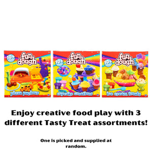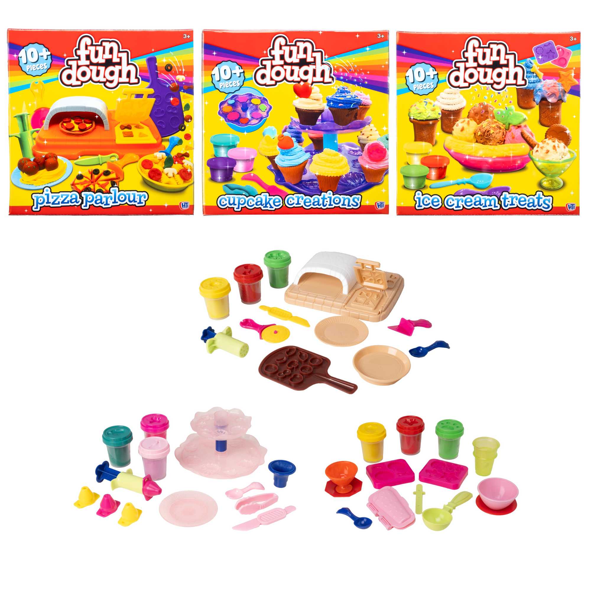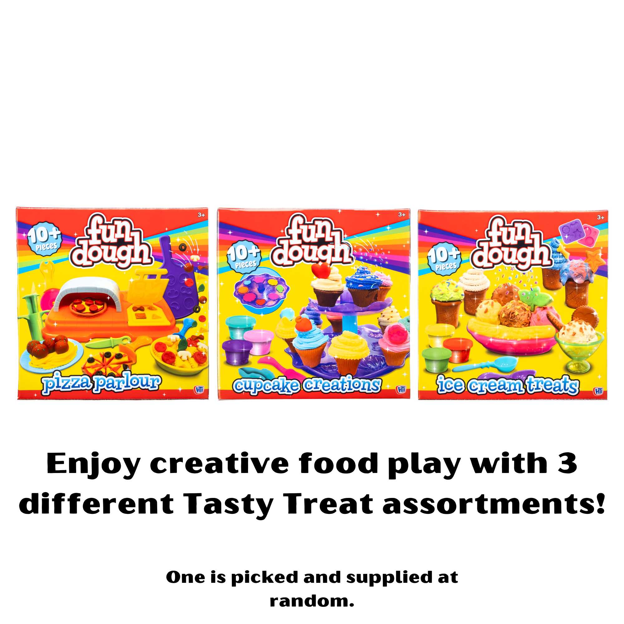 • Includes: One of the following, Ice Cream Treats Fund Dough, Pizza Parlour Fun Dough or the Cupcake Creations Fun Dough.