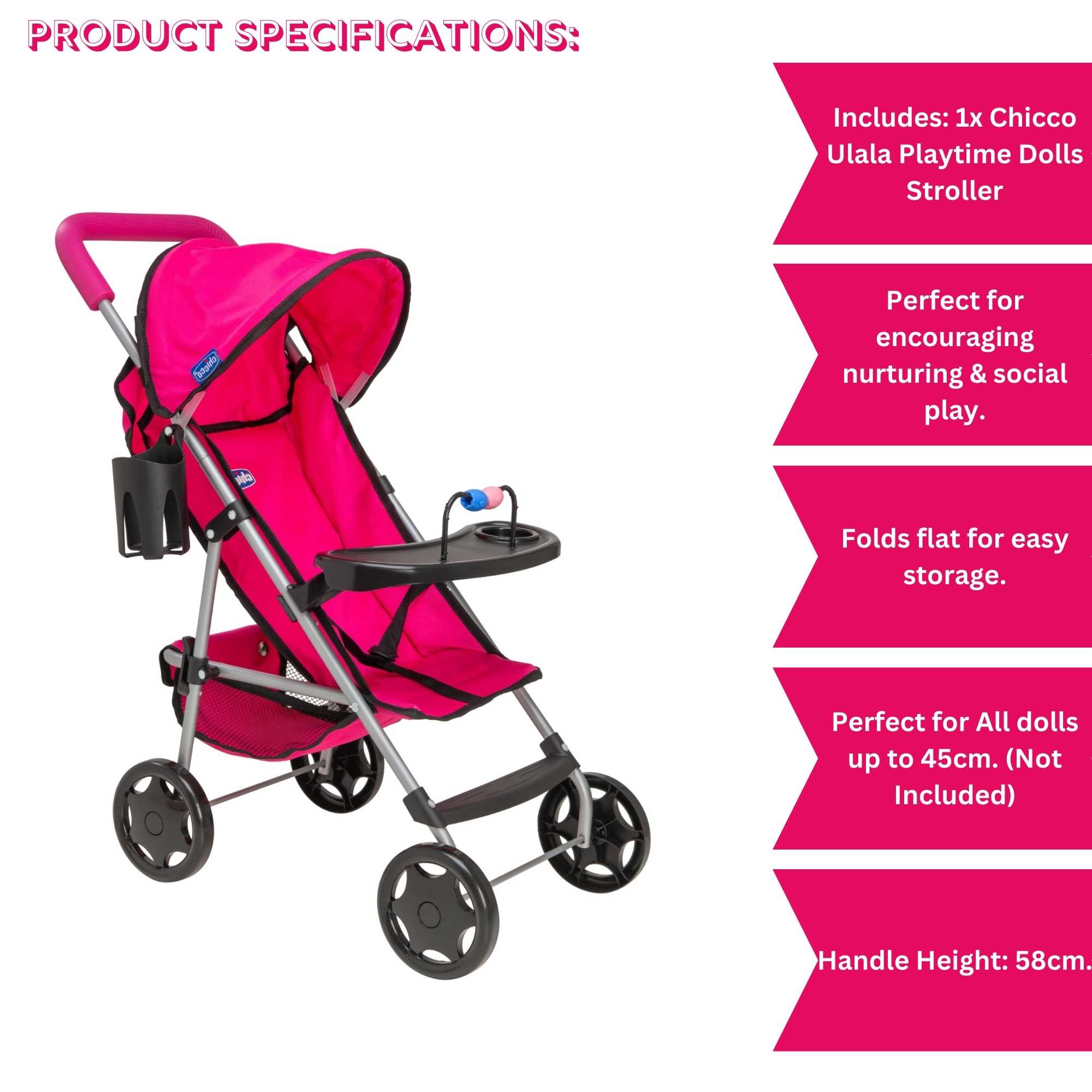 Meet the Chicco Playtime Dolls Pushchair – the ultimate companion for your little one's imaginative adventures!