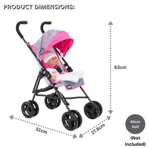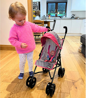 This stroller isn’t just a toy; it’s a reflection of Mamas & Papas' renowned craftsmanship and dedication to quality. Perfectly designed for little hands, it mimics the sleek and modern look of real strollers, ensuring a realistic and immersive play experience. Whether your child is exploring the living room, taking their dolls on outdoor excursions, or organising a doll parade with friends, the Junior Cruise Stroller is their trusty companion. Compact and lightweight, it's easy for children to handle on their own, fostering independence and creativity as they embark on imaginative journeys. Inspires imaginative scenarios and fosters nurturing skills. Ideal for birthdays, holidays, or any occasion to delight a young child with a quality play accessory.