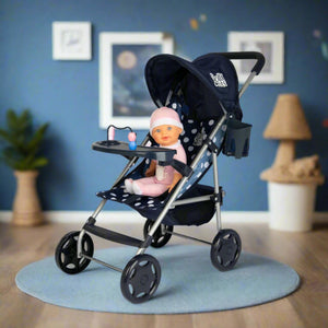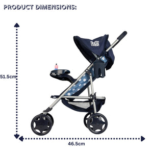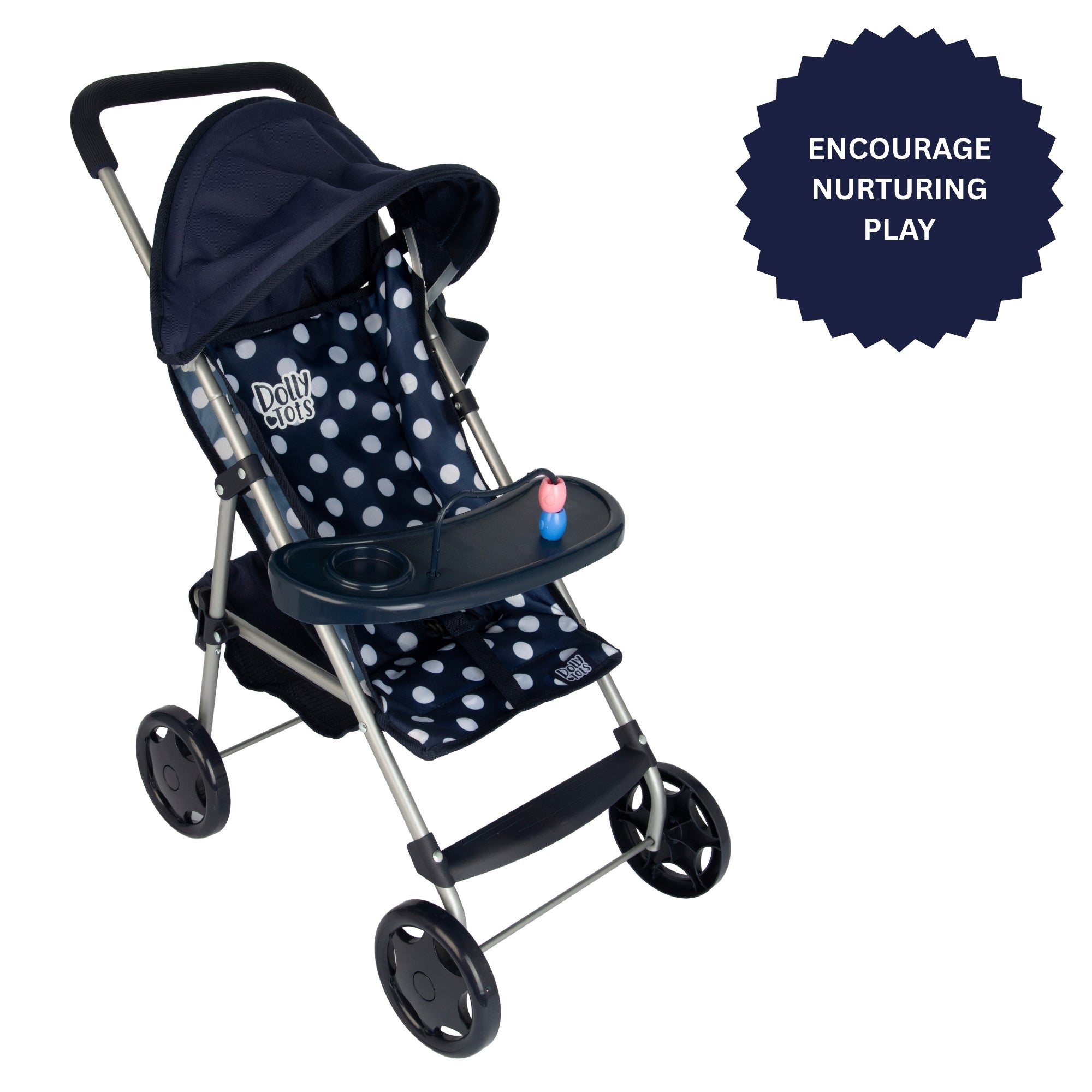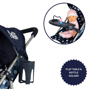 Dolly Tots Dolls Pushchair | Navy | With Play Table & Cup Holder