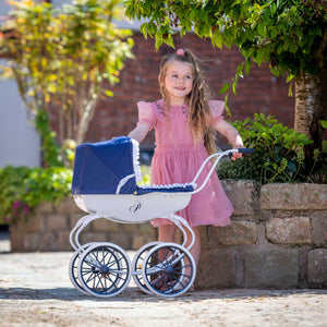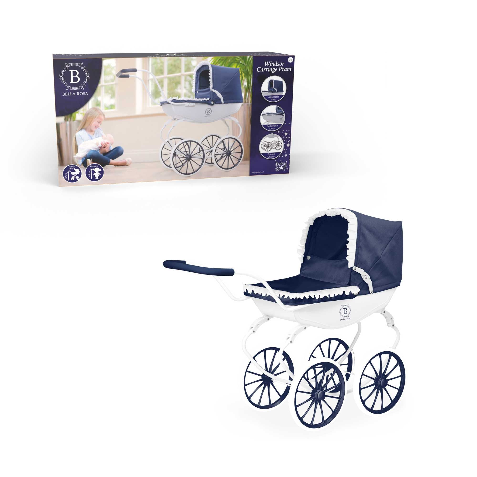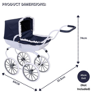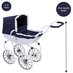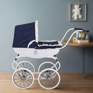 Bella Rosa Windsor Dolls Carriage Pram - Navy & White