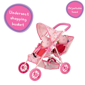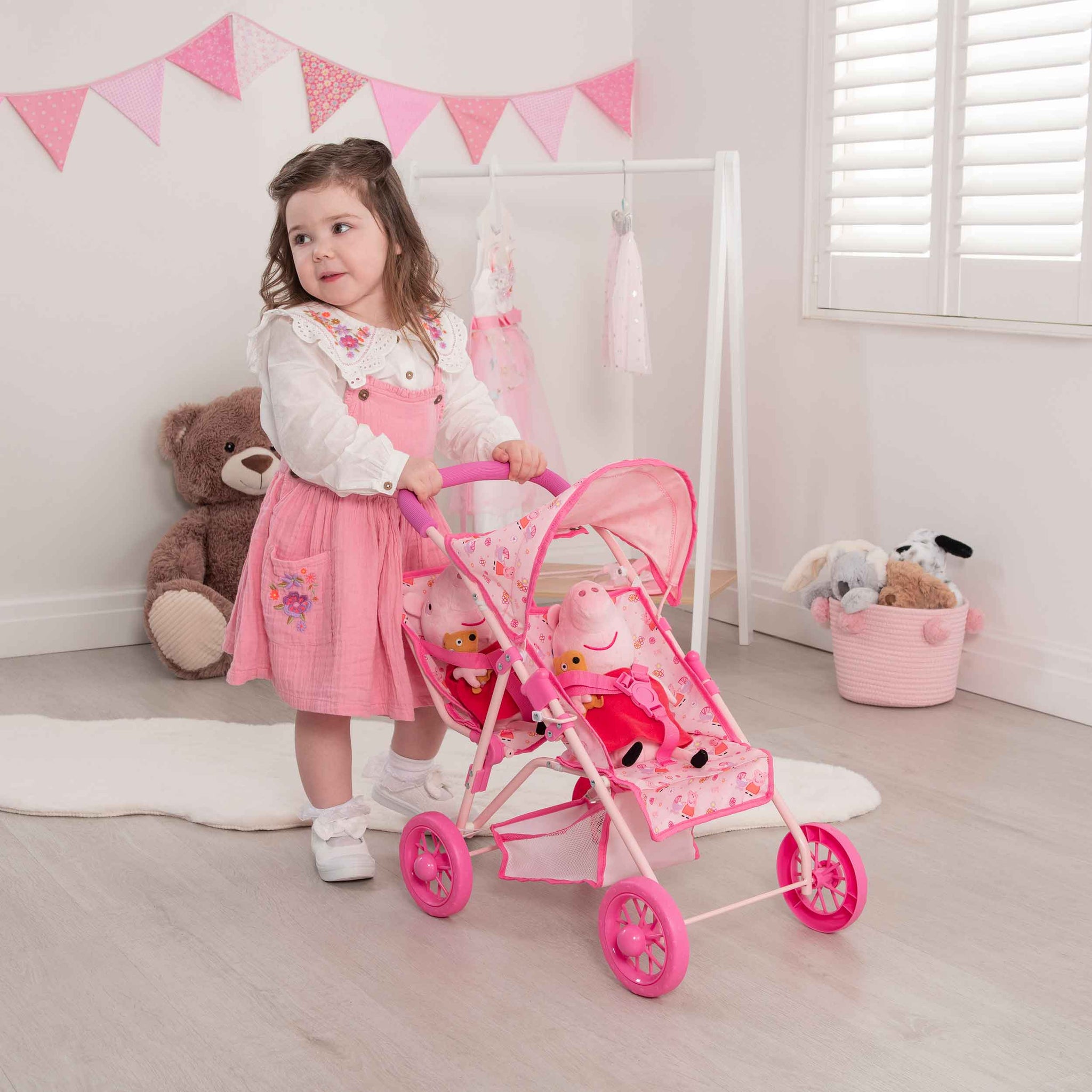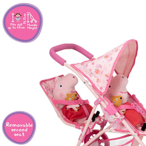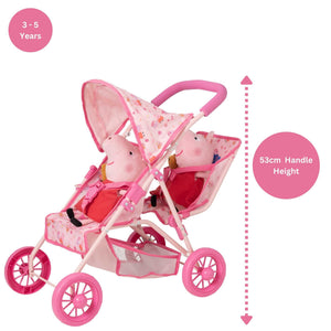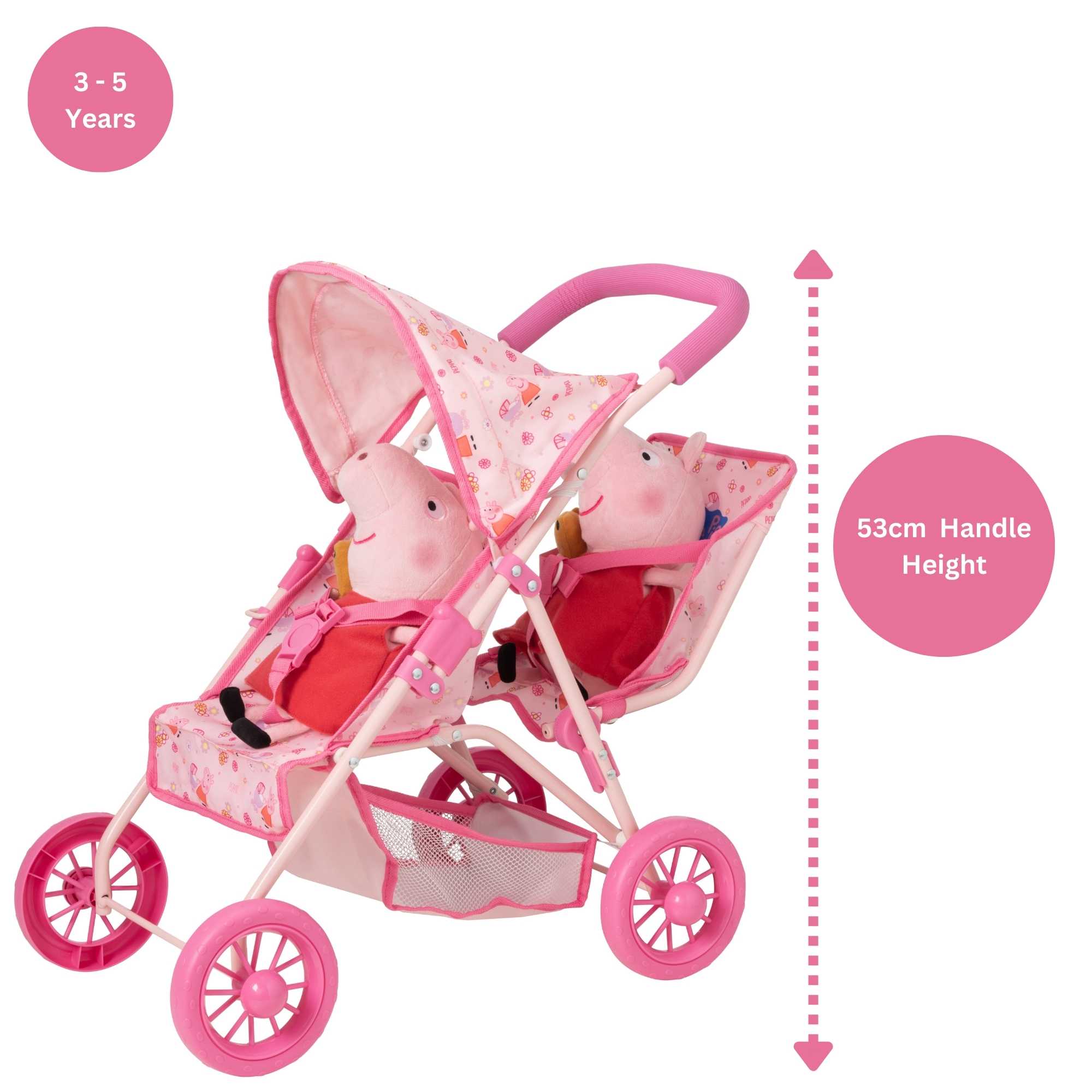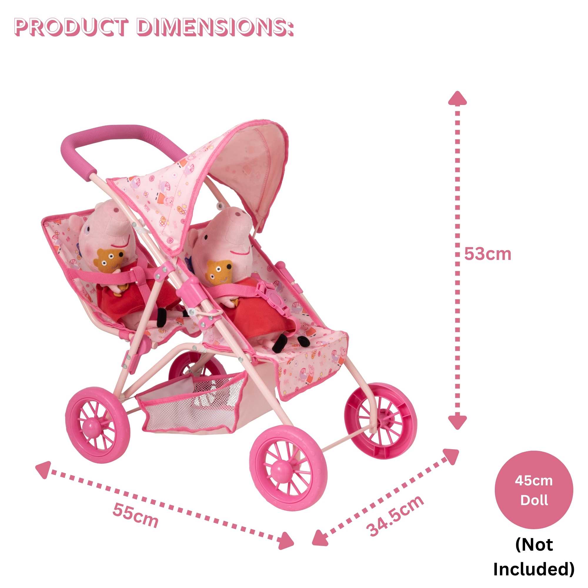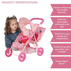 Introducing the Peppa Pig Tandem Twin Doll Stroller – the ultimate accessory for your little one's imaginative playtime!