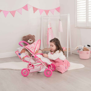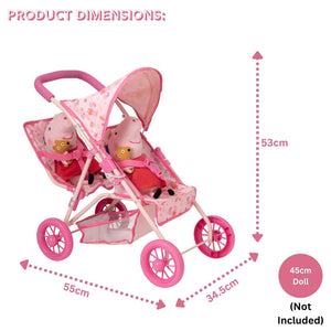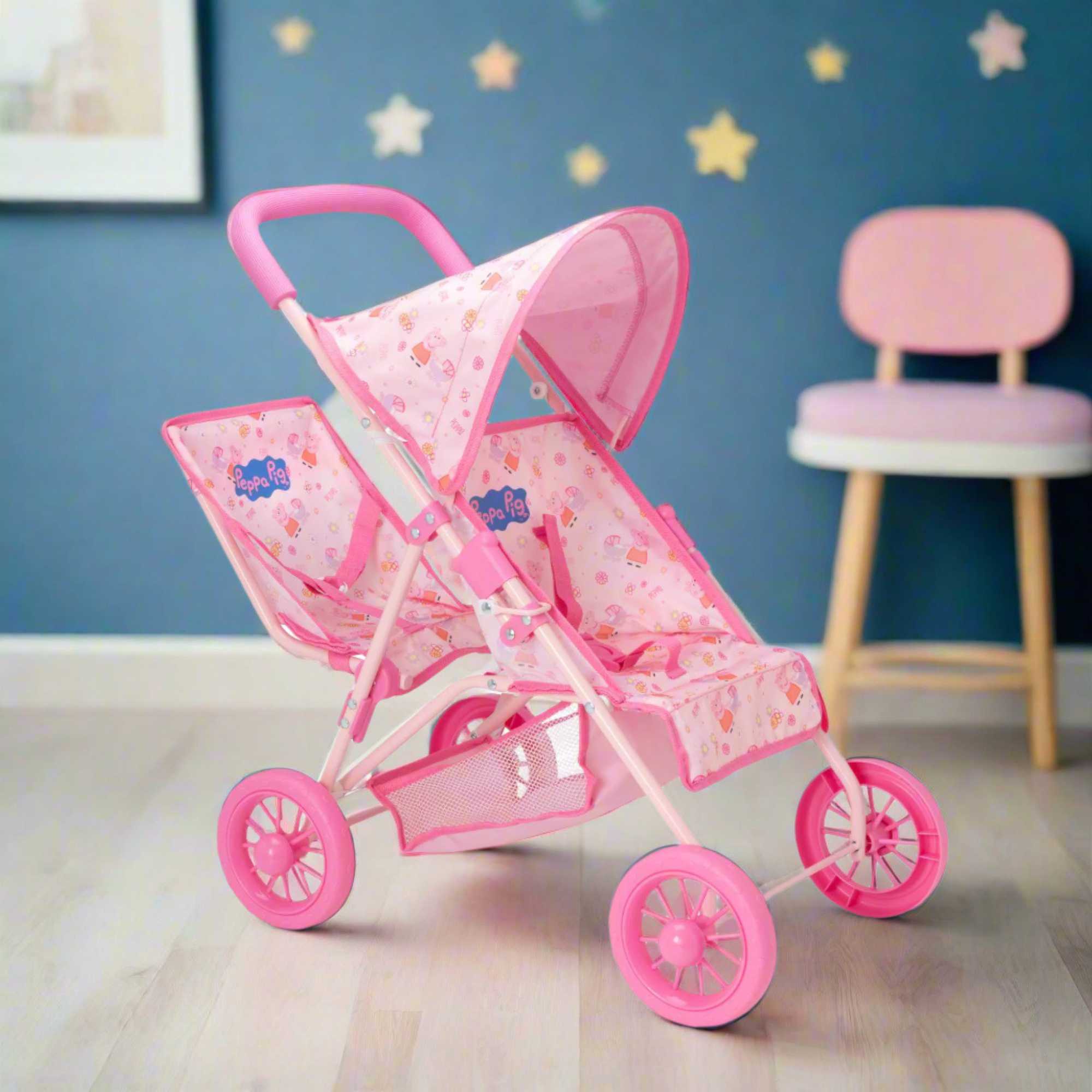 Bring joy and endless playtime possibilities to your child's world with the Peppa Pig Tandem Twin Doll Stroller – where every stroll becomes an exciting adventure!