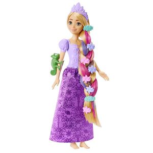 The set includes nine hair-styling pieces and a charming "frying pan" brush, allowing kids to recreate iconic hairstyles from the movie or create their own imaginative looks. As an added bonus, the set also features Rapunzel's adorable chameleon friend, Pascal, who can be clipped to her arm. Just like in the movie, this posable Rapunzel doll dons a tiara and her signature purple gown, featuring a shiny, removable soft skirt. With endless possibilities for imaginative play and adventures, this Rapunzel doll is sure to bring the enchanting world of Tangled to life for your child!