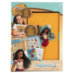 Unlock a world of creativity with the Moana 2 Surprise Activity Craft Set, featuring a secret key that opens four hidden doors to reveal a treasure trove of gel pens, crayons, stamps, scratch-art sheets, watercolour pages, stickers, and colouring sheets. Each surprise compartment adds an element of discovery, making crafting feel like a magical journey with Moana and friends.