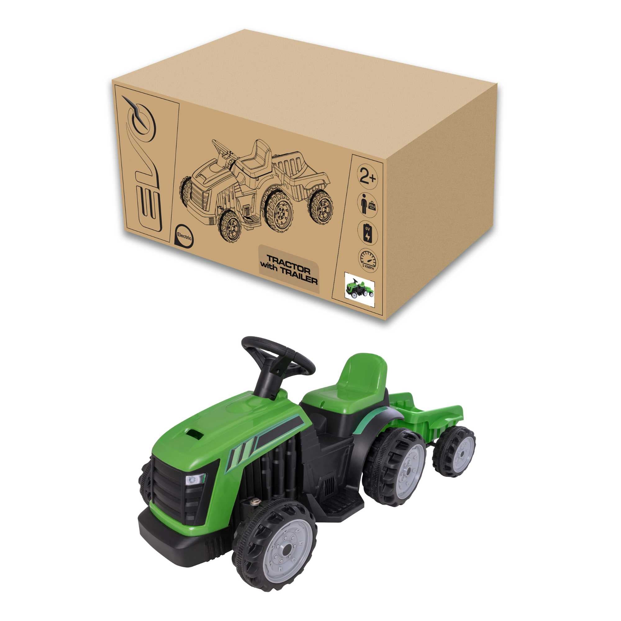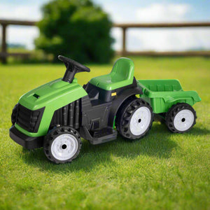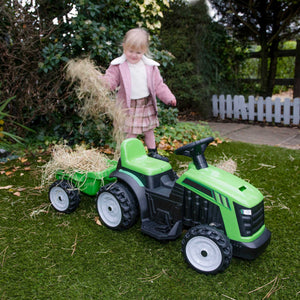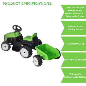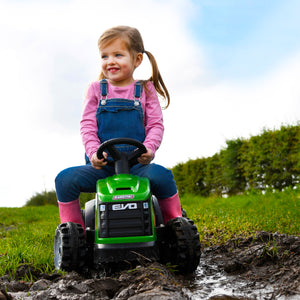 Meet the EVO Green Tractor & Trailer Ride-On, the perfect gift for your budding 2-year-old farmer! This electric green tractor ride-on, complete with a detachable trailer, is designed to provide hours of engaging, safe, and educational play.