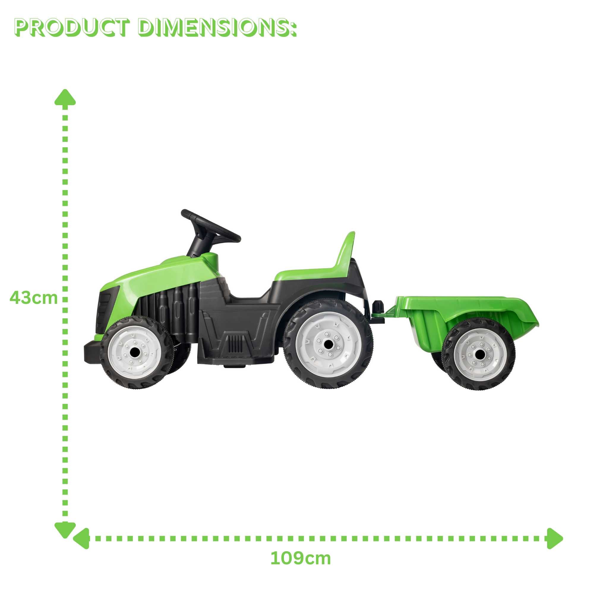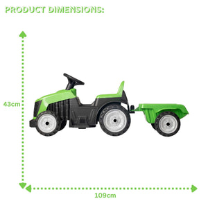 The vibrant green colour and realistic tractor detailing will make your child feel like they’re driving a real farm tractor. Designed with young children in mind, the tractor features a stable four-wheel base and easy-to-use controls, ensuring a safe and enjoyable ride. The detachable trailer adds an extra layer of fun, allowing your child to haul toys, leaves, or whatever their imagination desires. Encourages physical activity and helps develop motor skills and coordination in a fun, engaging way.