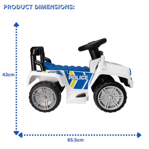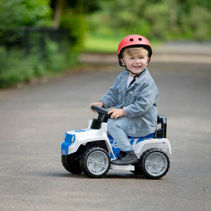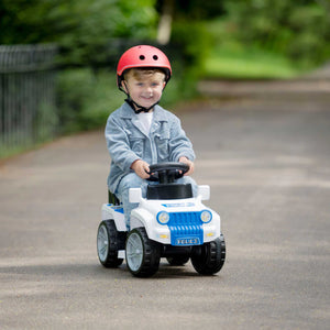 Imagine your child's eyes lighting up as they climb into their very own police truck, ready to embark on thrilling missions and heroic rescues. This isn't just a toy; it's a ticket to endless adventures and imaginative play. It's not only super cool but also incredibly sturdy, built to handle all the twists and turns of your child's wildest adventures. Safety is at the heart of this fantastic ride-on toy. With its robust 4x4 design, it's stable and easy to control, giving you peace of mind while your child explores. The easy-to-use controls and adjustable speed settings ensure that kids of various ages can enjoy the ride safely. Whether it's a smooth ride on the driveway or a rugged adventure in the backyard, the EVO Police Truck can handle it all. Plus, with its rechargeable battery, the fun just keeps going! Picture the excitement on your child's face as they race to the rescue,  feeling like the hero they are. It's perfect for solo missions or teaming up with friends for epic playdates.