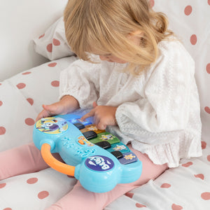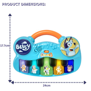 Designed to grow with your little one, the Bluey Keyboard features two fun modes – Piano Mode and Fun Mode. In Piano Mode, children can press the colourful keys to create their own tunes, while Fun Mode plays familiar sounds and phrases from the beloved Bluey TV show. This playful mix of music and character sounds keeps little ones entertained while supporting early learning and development through sound, colour, and touch.