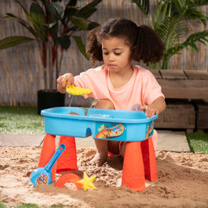 This interactive play table is perfect for outdoor fun, combining the best of both worlds—digging in the sand and splashing in the water! Whether they're building sandy towers or sailing in a water rescue mission, this play table encourages creativity, teamwork, and active play. Featuring the beloved Paw Patrol characters, this table adds extra excitement with visuals of Chase, Marshall, and the gang, making playtime even more fun. Designed with separate compartments for sand and water, allowing for double the fun with tactile play and creative exploration. Comes with buckets, spades, water scoops, and sand molds to help kids dig, build, and splash. Kids can create their own rescue adventures, combining water play and sand construction to solve imaginary Paw Patrol missions. Hands-on play with sand and water helps develop fine motor skills, creativity, and problem-solving abilities.
