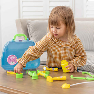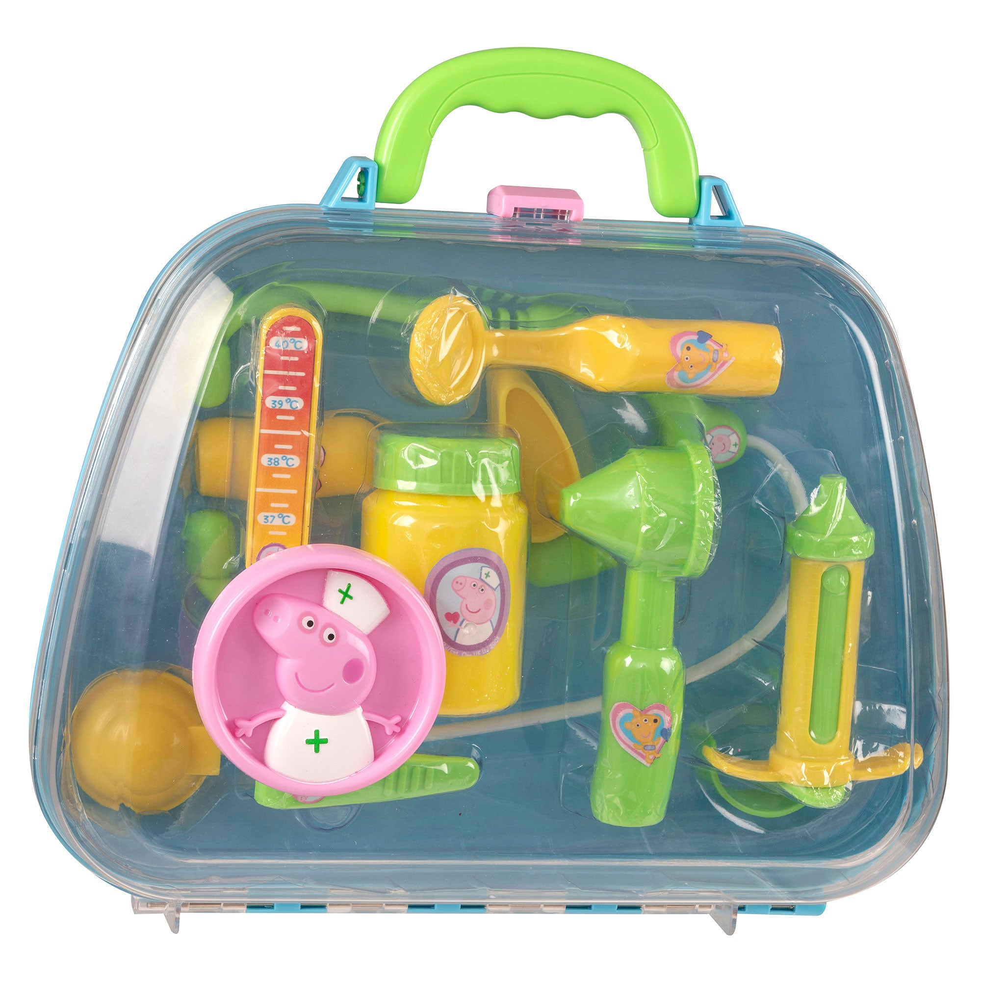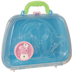 Be just like Nurse Peppa! This carry case contains all the play accessories you need to be just like a real medic. Contents include a pretend stethoscope, thermometer, otoscope, syringe, plaster, medicine bottle, scissors, mirror and tweezers. The hard-bodied case is perfect for little Peppa Pig fans to use for storage and take everywhere they go. When all the medical emergencies have been attended to, all accessories pack away into the case for tidy away play.
