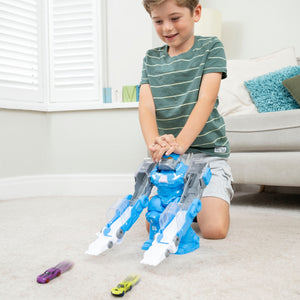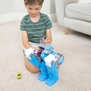 Unleash wild racing action with the Teamsterz Robo Wreckers Gorilla Slam Playset! This exciting vehicle launcher features a fierce robotic gorilla design that kids will love. Complete with lights, gorilla grunts, engine sounds, and glowing eyes, it brings every race to life while guaranteeing hours of action-packed fun for children aged 3 and up.