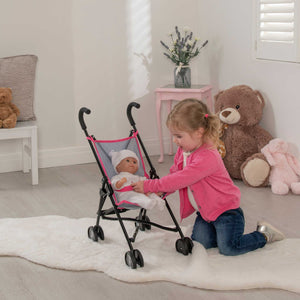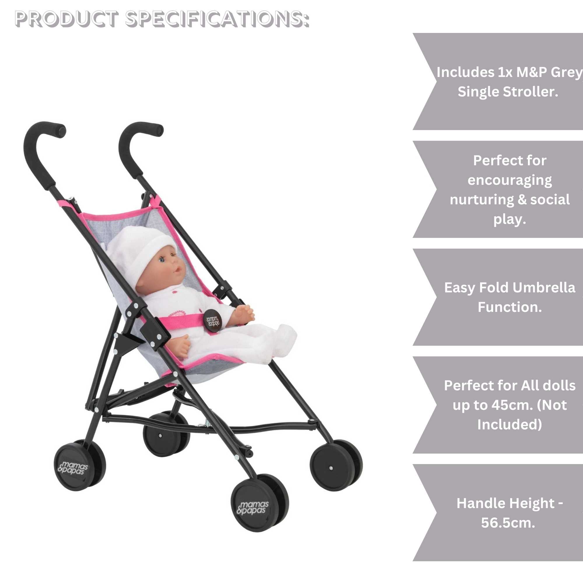 Crafted with care and designed for durability, it mirrors the quality and style of real Mamas & Papas strollers, ensuring both authenticity and reliability in every play session. Whether your little one is taking their favourite dolls for a stroll around the house or organizing a grand doll parade, this stroller is up to the task with its sturdy construction and charming pink and grey design. Compact and lightweight, it's easy for children to handle on their own, fostering independence and creativity as they embark on imaginative journeys. Inspires creative storytelling and role-playing scenarios with dolls. Ideal for birthdays, holidays, or any occasion to delight a young child with a quality play accessory.