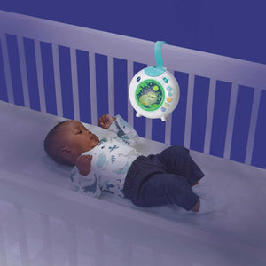 The cot light also features a 15 and 45-minute timer, volume controls and light controls that operate the baby nightlight and the rotating light pattern projected onto the ceiling. The built-in sound sensor plays calming responses if your little one cries. Strap included to securely attach the unit to a cot."