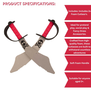 Transform playtime into an epic adventure with our 2-pack of Foam Cutlasses! Designed for young swashbucklers, these soft, safe, and durable foam swords inspire imagination and provide hours of excitement. Whether battling on the high seas or setting off on daring quests, these cutlasses bring adventure to life in the safest way possible.