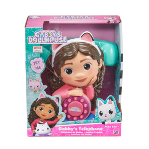 Step into the magical world of Gabby’s Dollhouse with the Gabby Telephone! This adorable toy phone is designed just like Gabby herself, complete with her cute cat-ear headband and bright, cheerful colours. Little fans can answer the phone when it rings, press the buttons to hear fun sounds and phrases, and even play the Gabby’s Dollhouse theme tune for an immersive playtime experience!