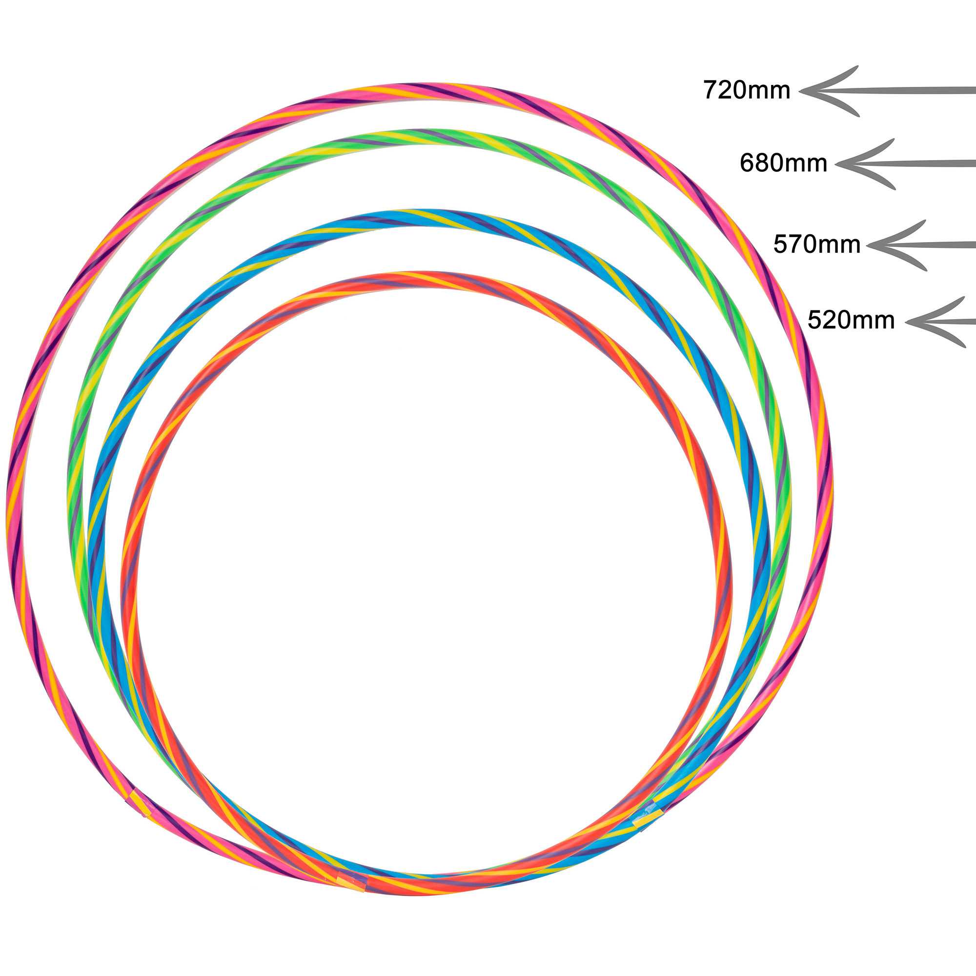 • Hoop Dimensions - Pink Hoop: 720mm, Green Hoop: 680mm, Blue Hoop: 570mm & Red Hoop: 520mm.