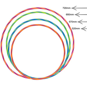 • Includes 1x Pack of 4 Hula Hoops (Ranging from Size Small to large).