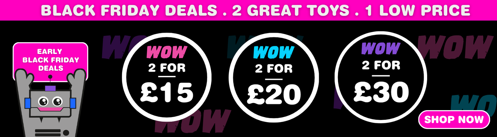 WOWBOT knows that getting an early start means getting the best deals, and he's kicking off Black Friday early by making it easier than ever to build your ultimate toy duo! Forget confusing discount codes or complicated Buy One Get One (BOGO) rules! We're simplifying your shopping experience by offering TWO amazing toys for one low, fixed price.