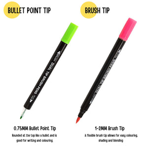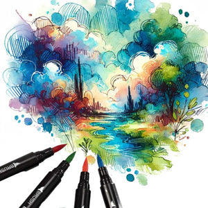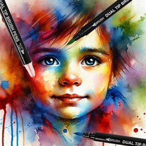 This exceptional collection of dual-tip brush pens is a game-changer, offering artists of all levels the perfect tools to paint their dreams with precision and flair. Unleash your creativity with the dual-tip design of our brush pens. On one end, a fine point for intricate details; on the other, a flexible brush tip for broad strokes and expressive blends. This versatile set allows you to effortlessly switch between precision and fluidity, opening a world of possibilities in every stroke. Achieve professional-grade watercolour effects effortlessly. Whether you're a seasoned artist or just starting your watercolour journey, the Dual Tip Brush Pens Set empowers you to blend seamlessly, layer with precision, and create captivating gradients with ease.