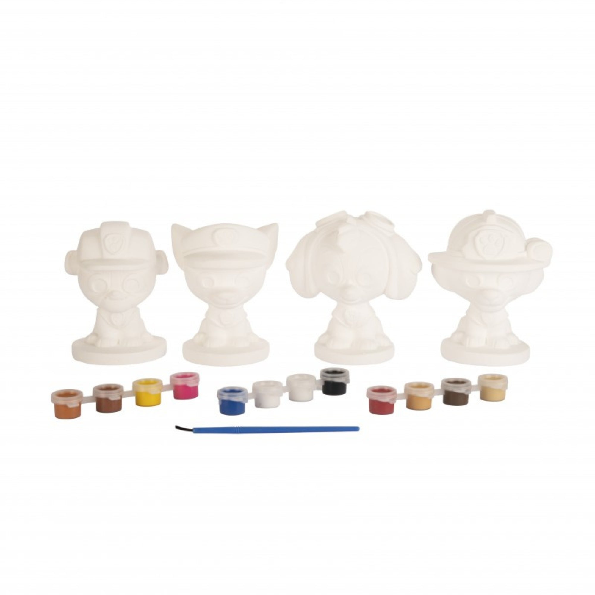 "Get ready for creative adventures with the Paw Patrol Paint Your Own Characters Craft Kit – the perfect art set for little Paw Patrol fans! Designed for children aged 3 and up, this fun activity kit includes four wooden Paw Patrol figures, a paint brush, and colourful paint pots so kids can decorate, design, and bring their favourite pups to life. From Chase and Skye to Marshall and Rubble, little artists can create their very own personalised rescue team.