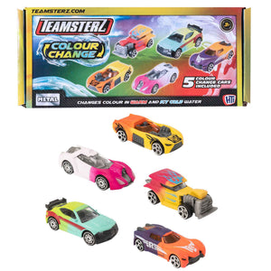 This Teamsterz playset includes five 3" water activated colour changing race cars. Simply submerge your toy car into warm water to watch the magic and vibrant colour change happen before your eyes. Plunge the racing car into icy cold water to change it back to its original colour again. Not only will this kids' toy cars playset make the perfect addition to your little one's bath time, but the cars can also be used in water/sand pits in the garden on a sunny day.
